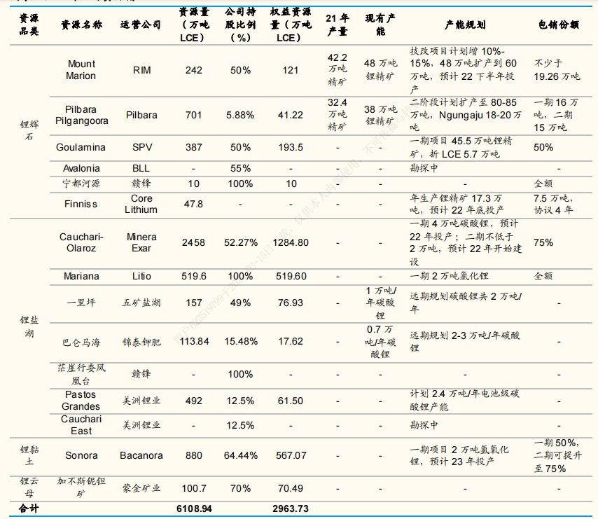 除了上述完善的产业链布局之外,赣锋锂电的锂资源还十分丰富,可以有效保障锂原材料的稳定供应。