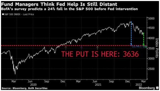 据美国银行调查显示,接受调查的大多数基金经理预计,由于担心俄乌冲突的影响,全球经济增长前景已跌至2008年金融危机以来的最低水平,今年全球股市将陷入熊市。美国银行调查的基金经理们认为,美联储将采取“止损措施”,以阻止标准普尔500指数在3,636点的下滑,这意味着美国主要基准股指将较当前水平下跌约13%,届时市场将从峰值跌至谷底的幅度超过24%。