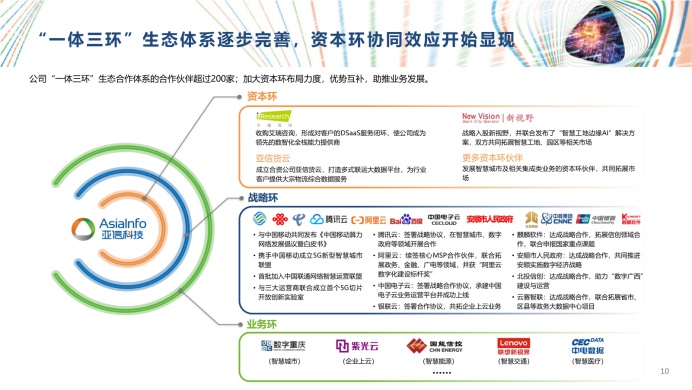 在战略环方面,公司也与通信运营商及公有云厂商展开战略合作,进一步与地方政府及其他国企展开密切的战略合作。业务环方面,公司有业务合作的伙伴总体数量已达到200家以上。