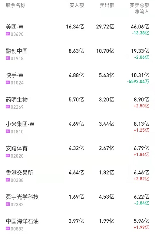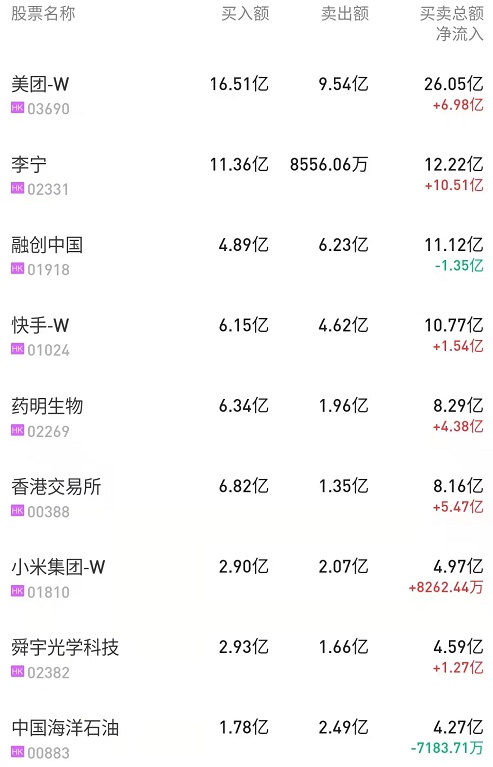 此外,小米集团-W(01810)、快手-W(01024)分别获净买入2.07亿、9788万港元。