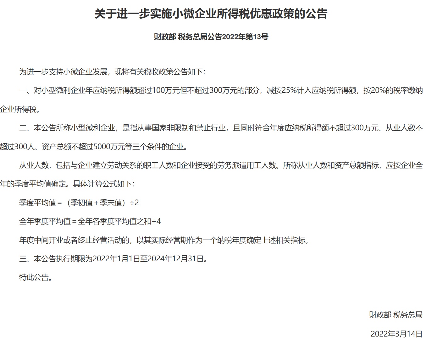 智通财经APP获悉,据财政部消息,为进一步支持小微企业发展,现将有关税收政策公告如下:对小型微利企业年应纳税所得额超过100万元但不超过300万元的部分,减按25%计入应纳税所得额,按20%的税率缴纳企业所得税。