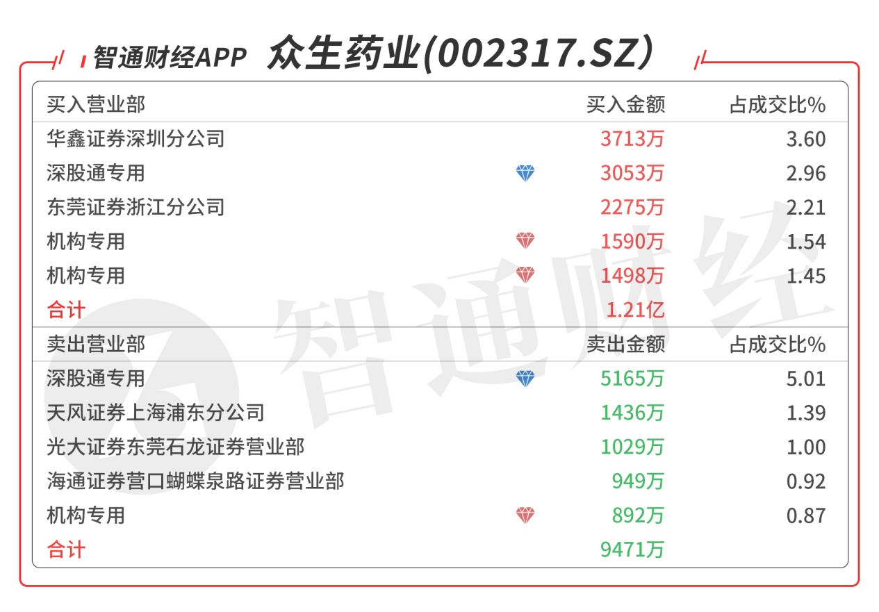 众生药业(002317.SZ):多主力现身龙虎榜,机构席位对倒净买入2894万元,深股通对倒净卖出2112万元,当日净买入3394万元,该股今日强势涨停,预计压力位在前期高点15.76元附近。