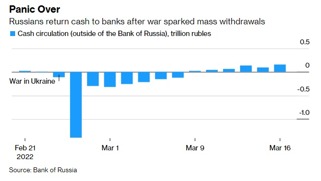 俄乌冲突给俄罗斯国内造成了损失,与此同时,股市关闭和交易中断,使人们不再关注利率这个主要工具。但由于通胀已接近1998年政府债务违约以来的最高水平,俄罗斯央行政策制定者需要提高借贷成本,以维持储户的信心,并避免银行遭遇挤兑。
