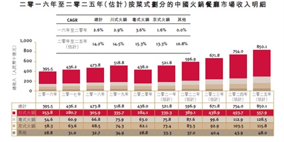 而火锅作为最受中国消费者欢迎的中餐,也是中餐市场中增长最快的细分市场之一。火锅餐厅市场的收入由二零一六年的人民币3955亿元增加至2019年的人民币5188亿元,复合年增长率为9.5%。预期该分布将在2020年-2025年期间继续以14.2%的复合年增长率进一步增长至2025年的8501亿元。