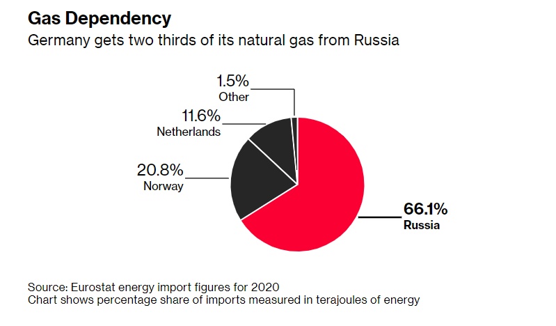 有统计数据显示,德国一半以上的天然气、一半的煤炭和大约三分之一的石油供应都来自于俄罗斯。在一项多元化供应举措中,德国和挪威正在考虑建设一条氢气管道,以减少欧洲对俄罗斯能源的依赖。