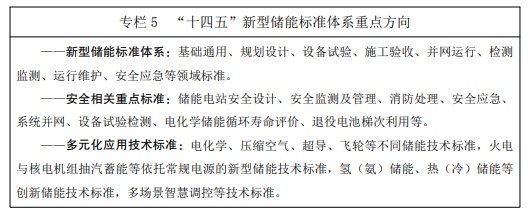完善全产业链标准体系。按照国家能源局、应急管理部、市场监管总局联合印发的《关于加强储能标准化工作的实施方案》要求,充分发挥储能标准化平台作用,建立涵盖新型储能基础通用、规划设计、设备试验、施工验收、并网运行、检测监测、运行维护、安全应急等专业领域,各环节相互支撑、协同发展的标准体系。