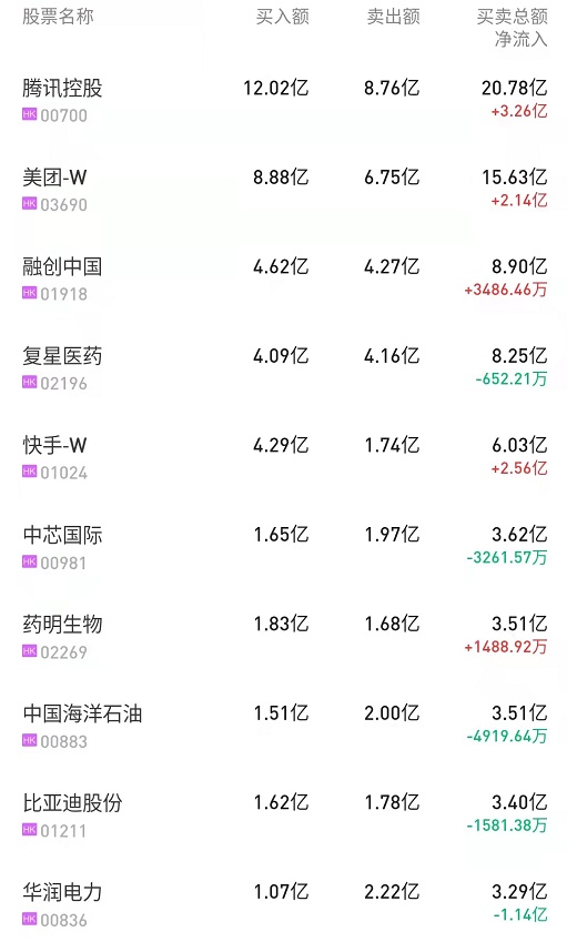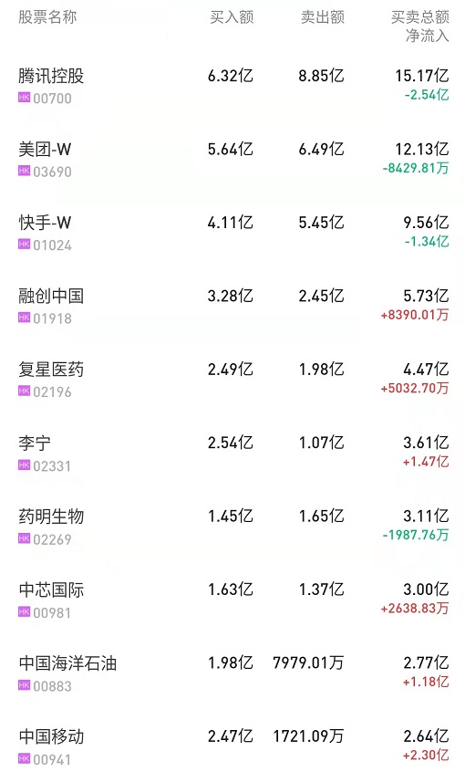 此外,美团-W(03690)、腾讯(00700)、中海油(00883)分别获净买入1.29亿、7238万、6854万港元。而中芯国际(00981)、药明生物(02269)分别遭净卖出6227万、4988万港元。