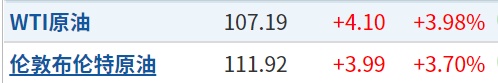 受此消息影响,WTI 5月原油期货价格涨3.98%,报107.19美元/桶;布伦特5月原油期货涨3.70%,报111.92美元/桶。