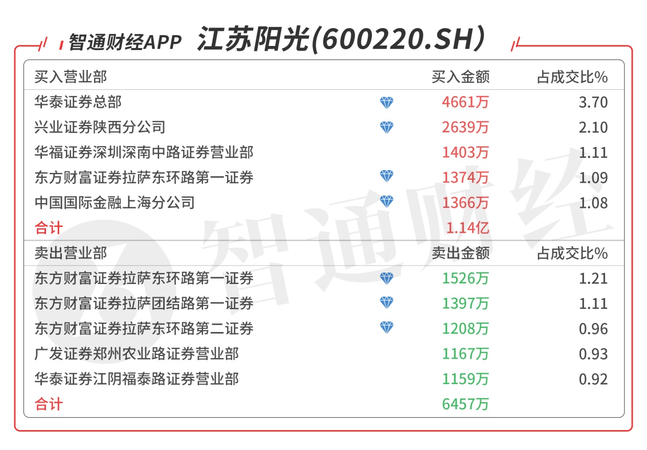江苏阳光(600220.SH):多主力现身龙虎榜,机构席位买入4661万元,买二是知名游资方新侠的席位买入2639万元,当日净买入4986万元,该股今日反包强势涨停,预计压力位在前期高点4.38元附近。