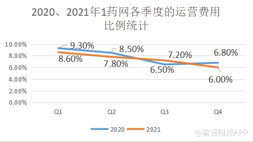 与此同时,包括销售及营销开支、一般行政开支、研发费用在内的运营费用持续改善,表明1药网的管理以及运营能力持续提升。2021年,1药网各季度的运营费用占比分别为8.6%、7.8%、7.2%、6%,呈明显下降趋势,且其中三个季度优于2020年同期。