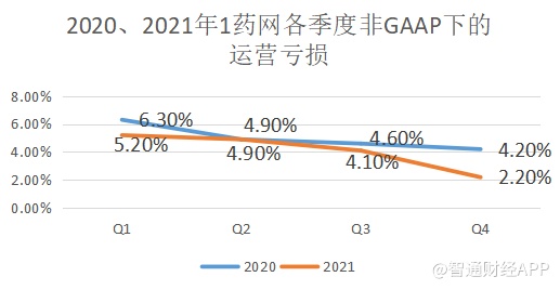 特别是在2021年第四季度,非GAAP运营亏损率下降了2个百分点,按此趋势来看,1药网在2022年实现非GAAP下的单季度盈亏平衡已是大概率事件,这与管理层的指引高度一致。