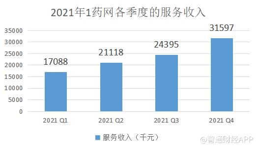 效果也十分明显。据财报显示,1药网2021年各季度的服务收入分别为1708.8万元、2118.8万元、2439.5万元、3159.7万元,逐季环比持续增长,证明1药网的服务收入处于高速成长中。按年度,2021年的服务收入为9420万元,同比翻倍增长。随着服务类产品在客户中的持续渗透,服务将成为1药网除药品收入外的新增长曲线。在药品+服务的双增长引擎下,1药网成长性无忧。