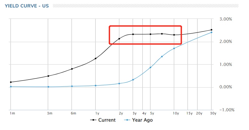 三年期美债收益率昨日一度跃升逾20个基点,当日收于2.32%,上涨约18个基点,创下过去10年来该期限收益率的最大单日涨幅之一。短端美债的价格走势最为强劲,通常也是受货币政策收紧影响最大的债券,但长端美债(10年以上)收益率也大幅上升,技术信号显示当前的美债收益率仍有上行空间。