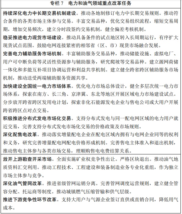 深化电力、油气体制机制改革,持续深化能源领域“放管服”改革,加强事中事后监管,加快现代能源市场建设,完善能源法律法规和政策,更多依靠市场机制促进节能减排降碳,提升能源服务水平。