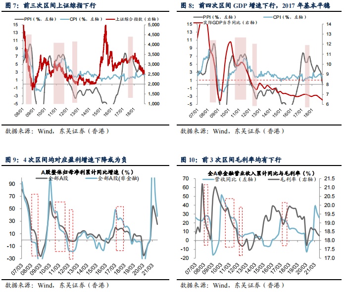 警惕由杀估值转为杀业绩的可能。过去三个月两个宏观背景超预期:联储加息提前,俄乌冲突引发全球通胀。2月PPI同比8.8%,环比0.5%,由负转正,假设今年国内PPI维持高位,我们不得不重新考量滞胀环境下对于企业盈利的伤害,一方面GDP下行造成企业收入增速承压,而由于通胀的二次抬升使得毛利整体下行,造成企业盈利受损,最终出现有杀估值向杀业绩转变。东吴策略上期周聚焦《后通胀时代是谁的敌人?》复盘历史上四次“后通胀时代”,即通胀在第二年仍维持高位:油价、粮价上涨,PPI带动CPI二次上行:2008/3-7、2010/10-2011/7、2012/6-9、2017/5-10。结果显示股市基本下行,仅17年例外,背后的原因在于前三次均出现了明显的滞胀环境,GDP和企业盈利均下行:2008Q1-3,GDP当季同比从11.5%降至9.5%;2010Q3-2011/Q3,GDP当季同比从9.9%降至9.4%;2012Q1-Q3,GDP当季同比从8.1%降至7.5%,为2003年以来首次GDP增速“破8”;三段区间内全A及全A非金融部门归母净利润累计同比均快速下行或处于负增区间,且国际定价的油价和粮价快速上行造成的输入性通胀,对企业毛利造成显著下行压力,毛利率和营业收入均收缩。