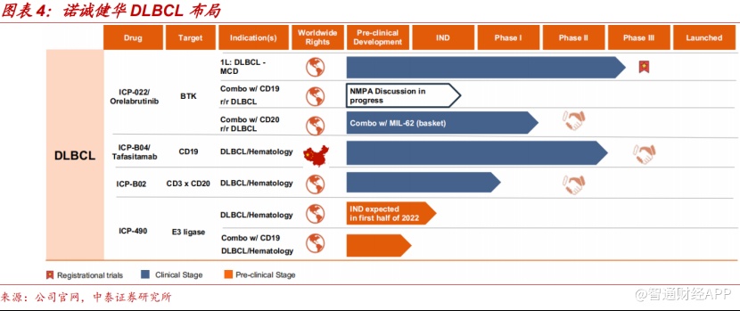 并且在去年8月,诺诚健华还以相对较低的代价成功引进了淋巴瘤领域的国际明星药——Incyte公司CD19 抗体Tafasitamab 的大中华区权益,进一步增强公司在血液瘤的实力。目前公司血液瘤管线的研究已涵盖例如CD20XCD3、BCL-2及E-3连接酶等重要血液瘤靶点。