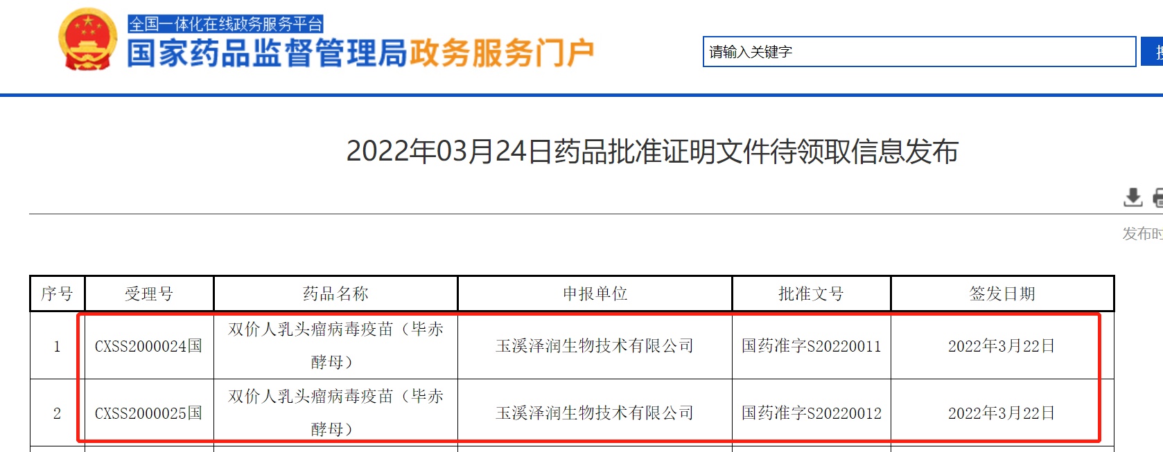 智通财经APP获悉,3月24日,国家药监局官网显示,沃森生物(300142.SZ)重组二价人乳头瘤病毒(HPV)疫苗正式获批上市。该疫苗为国产第二家HPV疫苗。此前我国已有四款HPV疫苗获批上市,其中万泰生物(603392.SH)的二价HPV馨可宁疫苗为首家获批的国产HPV疫苗,另外三款分别为葛兰素史克生产的二价HPV疫苗、默沙东公司生产的四价HPV和九价HPV疫苗。此外,据沃森生物官网显示,其九价HPV疫苗已至临床试验I期阶段。