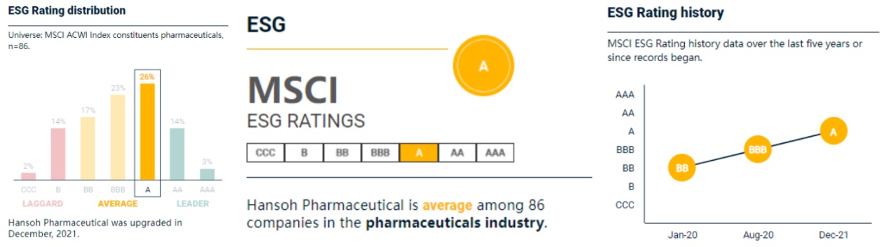 图:翰森制药MSCI ESG评级两年内由BB提升至A级