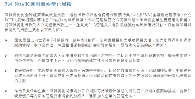 图:翰森制药根据TCFD建议进行了系统性气候评估