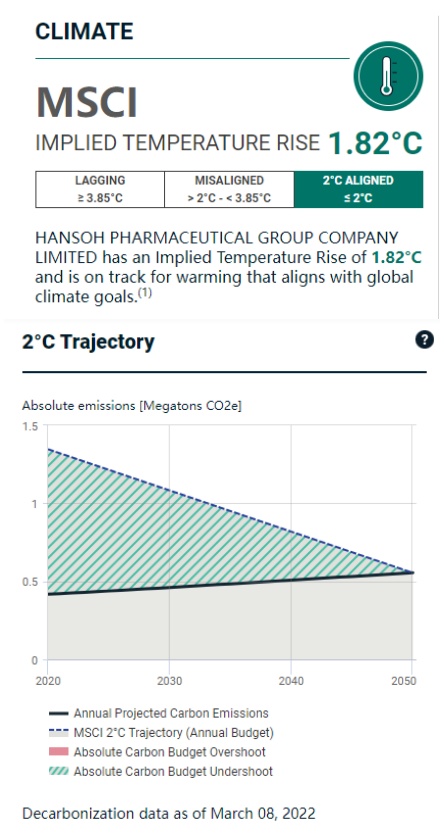 图:翰森制药的MSCI潜在温升控制在《巴黎协定》目标之内