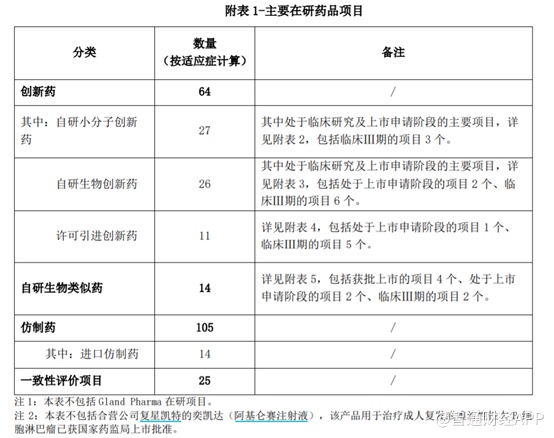 不仅如此,公司的研发管线也日益丰富。截止2021年底,公司共有在研创新药64项,其中自研小分子创新药27项,自研生物类似药26项,许可引进创新药11项。