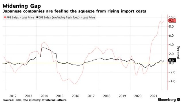 俄乌冲突加剧了日本的通胀上涨,以40年来最快的速度推高了日本企业产品的成本。与此同时,日元的贬值势必会推高进口价格,挤压企业和消费者的预算。
