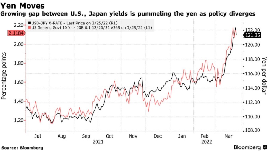 据悉,日元兑美元汇率一度跌至六年多来新低,首次跌破1美元兑122日元关口。黑田东彦坚持认为,日元走软对整体经济有利,并认为日本央行必须继续实施刺激措施。