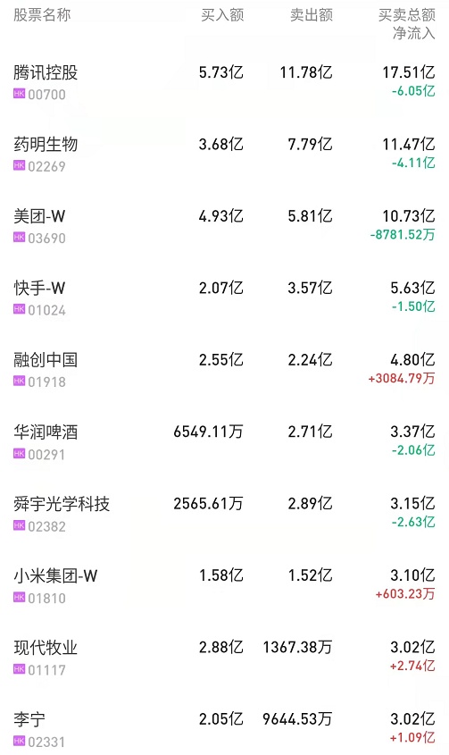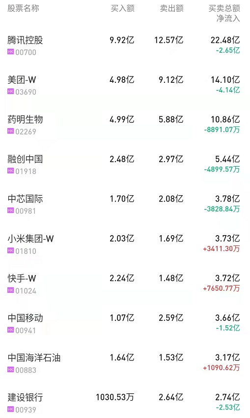 此外,建设银行(00939)、中国移动(00941)、中芯国际(00981)分别遭净卖出2.53亿、1.51亿、3828万港元。