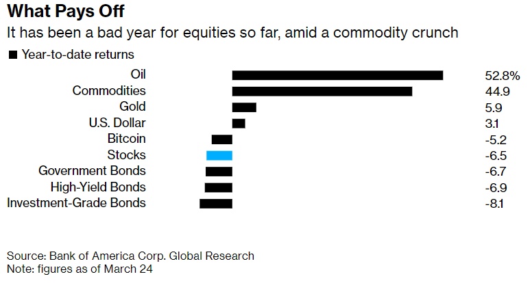 今年至今,在大宗商品走高的背景下,对股市来说可谓是糟糕的一年
