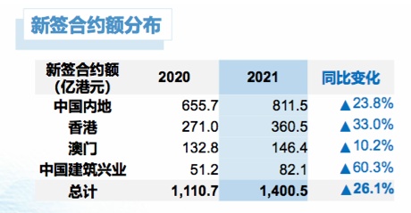 据智通财经APP了解,2021年公司新签合约的区域结构上,也颇有“惊喜”,其中除旗下以高端幕墙为主的中国建筑兴业,大增60.3%以外,香港新签合约,是很超乎市场预期的。