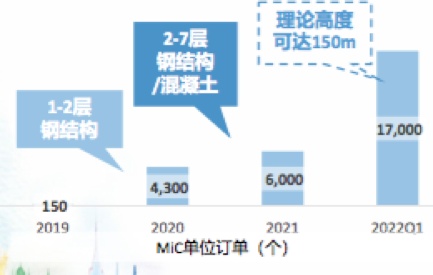 2021年,公司MiC单位订单已达6000个,撬动百亿港元新签合约额获取。截至2022年首季,公司的MiC单位订单已达17000个。