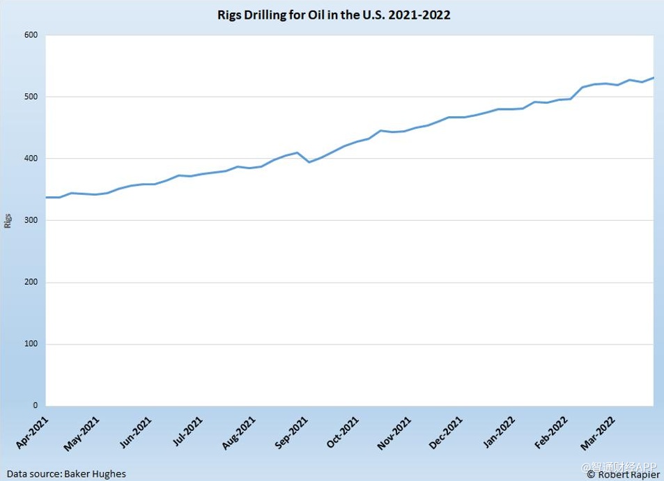 但福布斯撰稿人Robert Rapier认为,这些想法大多是错误的。事实上,美国的石油钻井平台数量正在稳步攀升。根据油服公司贝克休斯的数据,过去一年,美国的石油钻井平台数量增长了60%。从历史上看,它很少以比这更快的速度增长。