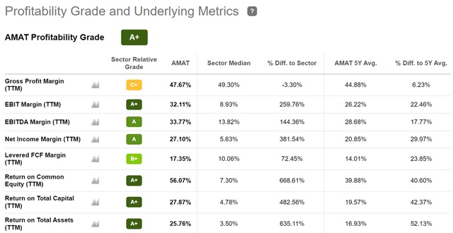 与此同时,应用材料拥有强劲的A级资产负债表,截至一季度末持有57亿美元现金和短期投资。虽然0.76%的股息收益率相当低、且派息率只有13%,但股息自2021年年初以来已增长了18%,未来预计还会有进一步增长空间。