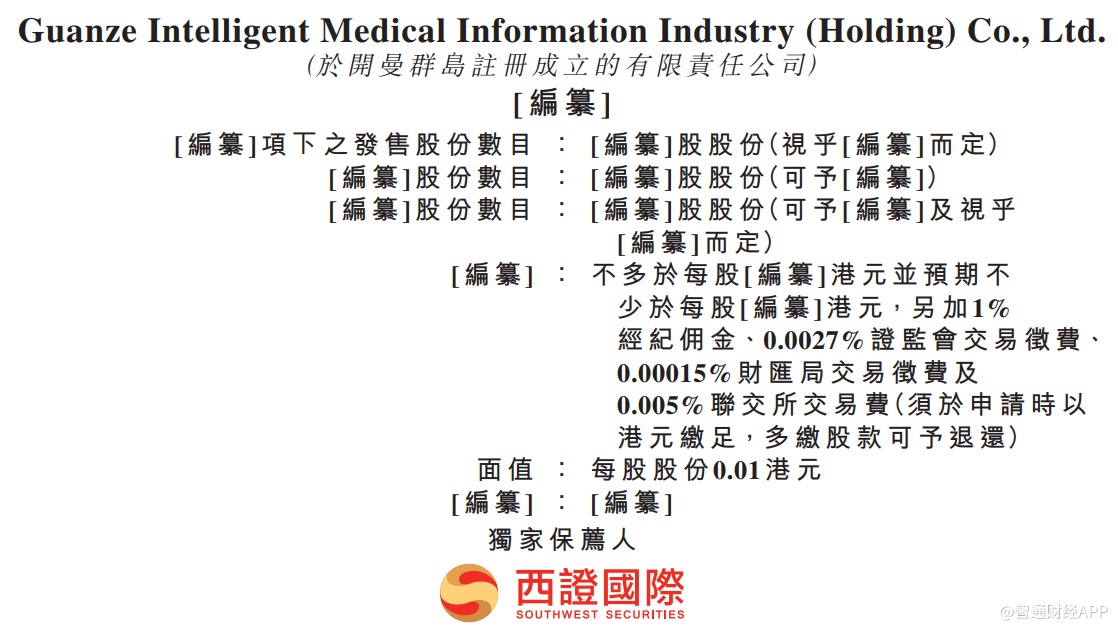 智通财经APP获悉,据港交所3月28日披露,冠泽智慧医疗信息产业(控股)有限公司(Guanze Intelligent Medical Information Industry (Holding) Co., Ltd.)向港交所主板提交上市申请,西证国际为独家保荐人。