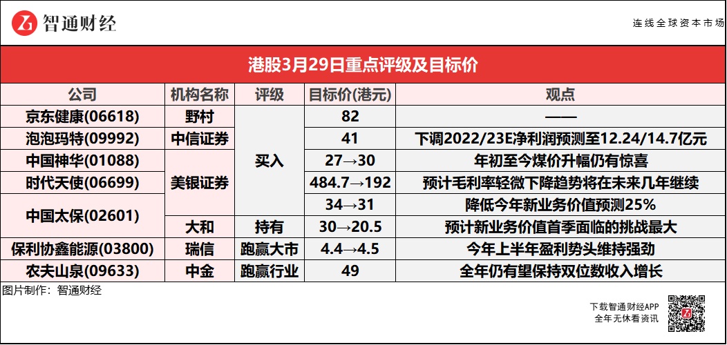 大和将中国太保(02601)评级由“买入”下调至“持有”,主要基于对其资本管理及新业务前景的忧虑,另下调2022-23年每股盈利预测14%至24%,每股派息预测降32%至35%,新业务价值预测下调37%至40%,令预测期内的平均内含价值营运回报(ROEV)降低11.9%,目标价由30港元调低31.7%至20.5港元。