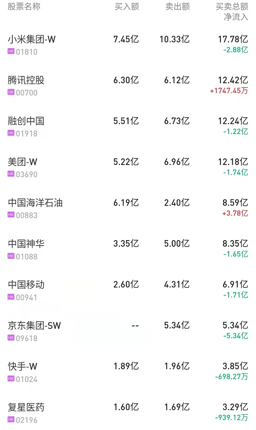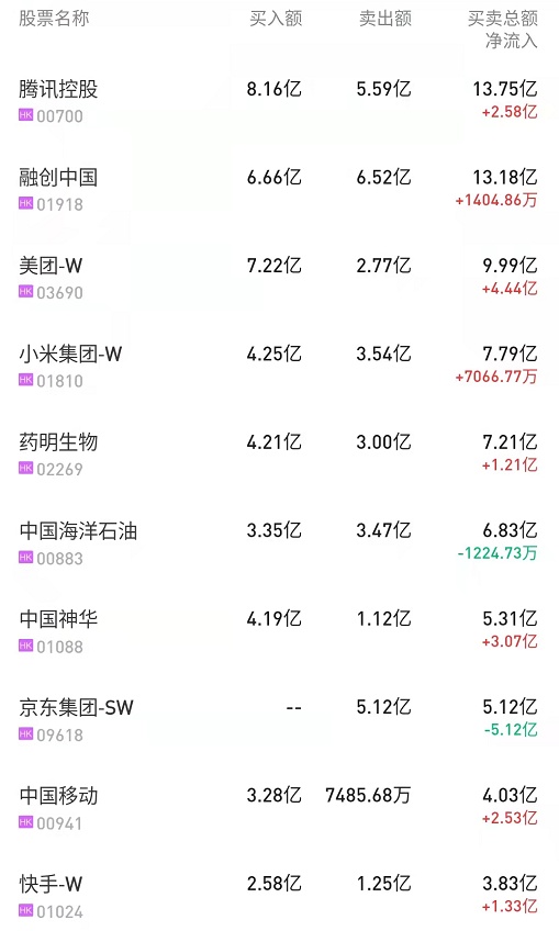 中海油(00883)获净买入3.65亿港元。消息面上,几位接近欧佩克+的消息人士表示,尽管乌克兰危机导致油价飙升,且消费国呼吁增加供应,但欧佩克+可能会坚持其5月份小幅增产的计划。花旗发布研报称,在油价上涨的环境下,中海油是“三桶油”中的主要受益者,因为中海油为纯上游企业,原油产量占总产量的80%。