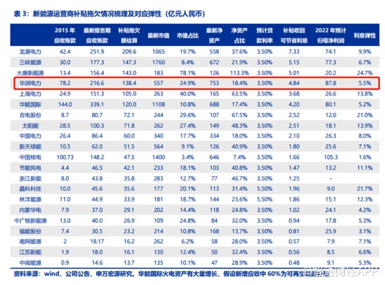 根据申万宏源的预测,华润电力累计补贴拖欠约138.4亿元,约占净资产的18.4%;补贴收回约节省利息4.84亿元。