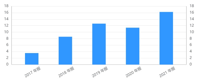 经统计可见,百融云创近年来的经营现金流表现强劲——2020年及2021年,伴随公司业务规模一路扩大,叠加客户粘性高、账期短等优势,公司的经营活动现金流净额同步跃升,2021年该指标已达到2.65亿元,同期的每股营业活动现金流净额逾0.53元,该指标在已披露年报的全部公司中排名第二高,在垂直领域SaaS公司中排名居首——这证明百融云创主业成长质量的优势,扩张态势经检验呈“良性”。