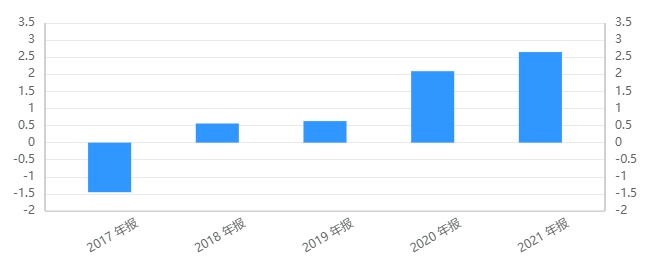 百融云创近5年来经营活动现金流净额统计: