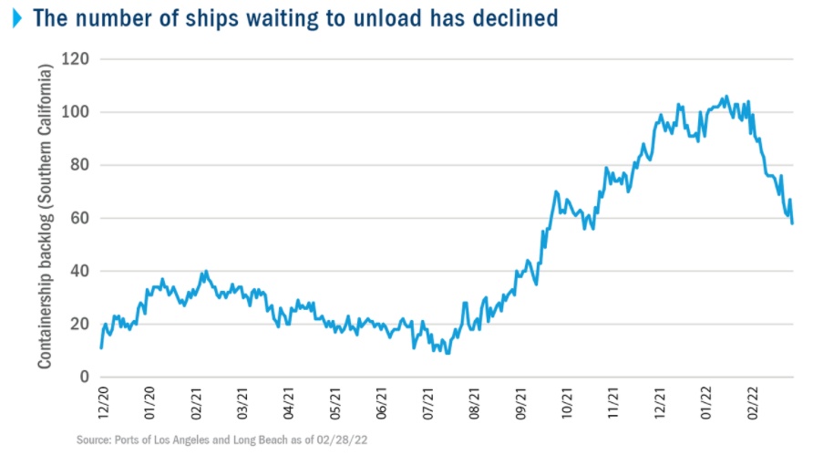 供应链正在缓慢地渡过难关。许多人预计供应链将在2023年底恢复正常。但哥伦比亚管理投资顾问有限责任公司证据表明,供应链限制正在更快地缓解。尽管乌克兰危机可能会给全球局势蒙上阴影,但在美国,季节性的缓冲已经缓解了一些最严重的交货延迟。