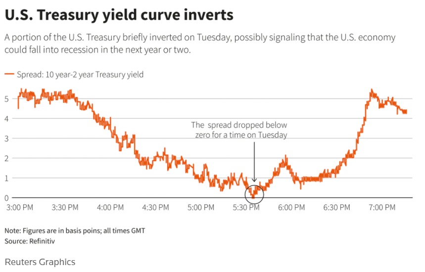 据了解,在美国时间周二的时候,10年期和2年期国债之间的息差曾短暂跌破零,但在随后扩大。