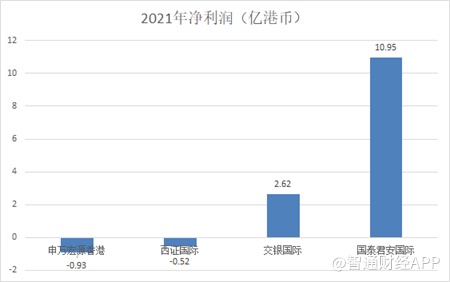 智通财经APP了解到,近日国泰君安国际(01788)发布2021年业绩报告。财报显示,2021年国泰君安国际实现营收39.72亿港元,收入规模再创历史新高;归母净利润为10.95亿港元。从已发布业绩的中资券商来看,保持高利润水准的只有国泰君安国际一家,净利润超过10亿港元。申万宏源香港、西证国际则双双亏损。