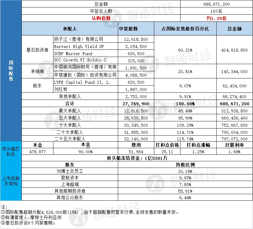 国际配售申购人数未披露,认购倍数约1.39倍。