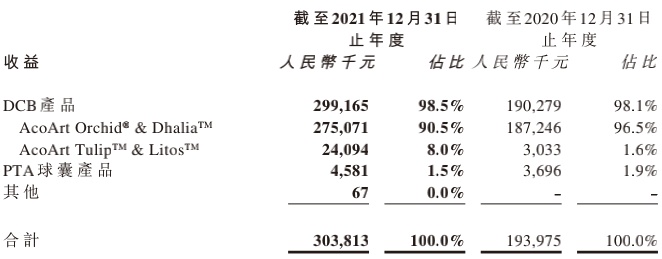 具体来看,公司于2016年5月开发并推出的国内首款外周DCB产品AcoArt Orchid®& Dhalia™,比第二款同类产品领先约四年的时间;而若以2020年产生的收益计算,该款产品以约86.9%的市场份额在中国外周DCB市场中占据主导地位。
