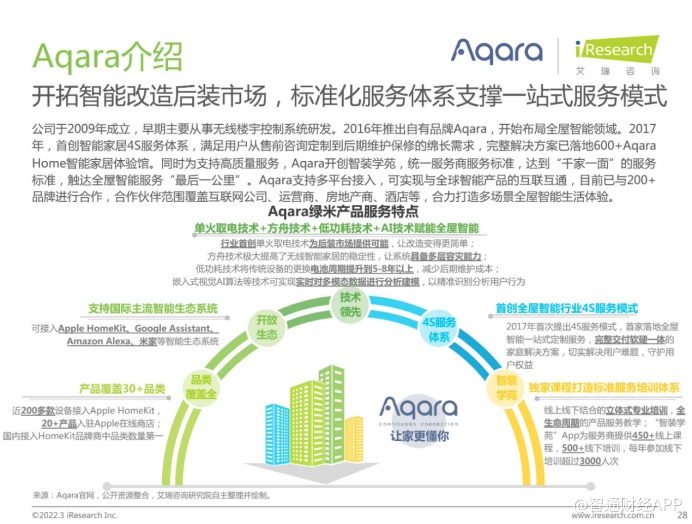 Aqara绿米作为IoT行业独角兽,在探索智能家居技术、产品及场景应用等方面一直持续占据行业领先地位,经过长期的厚积薄发,摸索出了一条从全场景产品的积累、底层支撑网络技术沉淀再到服务落地能力的成长脉络,首创了线上单品爆品-线下全屋智能4S店双引擎模式的商业模式运营,无论是产品创新力还是商业模式方面都找到了一条最适合自己发展的道路,不仅解决了行业痛点,还构建起了自己强大的竞争壁垒,在行业起到了积极示范与引领作用。这也是艾瑞为什么选择Aqara绿米作为本次白皮书标杆案例的重要原因之一。
