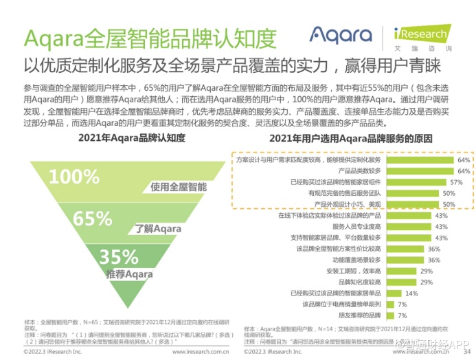 据了解,2021年双十一,在头部电商平台智能家居品牌榜单中,全屋智能领域独角兽Aqara绿米名列前茅,获得天猫榜单第一名,京东榜单第二名。而且在老用户中,Aqara绿米的用户粘性和扩展性很高。根据白皮书问卷调查,Aqara绿米以优质定制服务及全场景覆盖的实力,赢得了用户的青睐,数据表明在选用Aqara绿米服务的用户中,100%的用户愿意推荐Aqara绿米给亲朋好友。