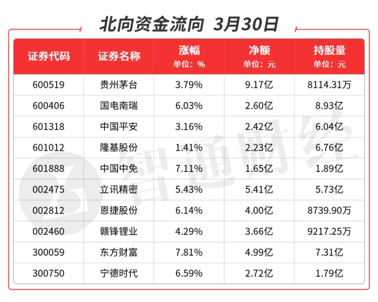 北向资金全天净流入127.26亿元,买入的品种主要集中在白酒、医药、证券、锂电池及光伏类。重点品种如下图: