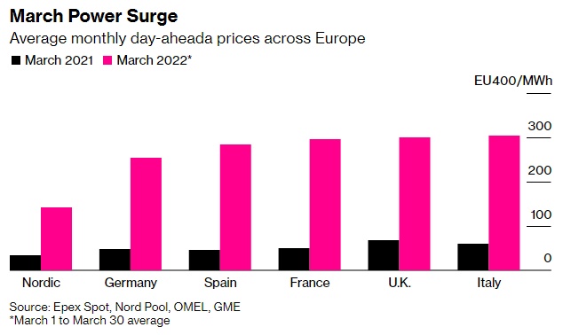 智通财经APP注意到,随着欧洲寻求减少对俄罗斯能源的依赖,该地区三月份出现了创纪录的电价。