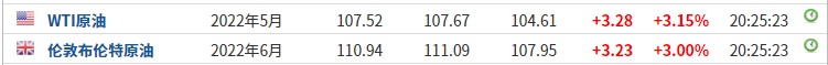 3. 截至发稿,WTI原油涨3.15%,报107.52美元/桶。布伦特原油涨3.00%,报110.94美元/桶。
