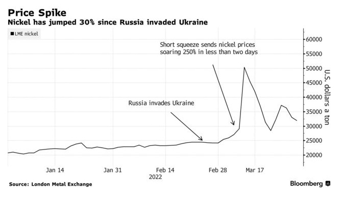 由于俄罗斯是全球最大的镍生产国之一,同时镍作为电动汽车电池的关键成分,俄乌冲突升级加剧了电动汽车制造商对镍供应的担忧。